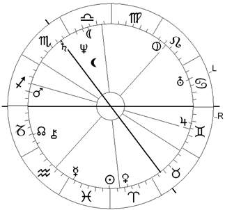 Abzuleiten sind daraus die Aussagen, daß die Frau in ihrer Durchsetzungskraft gehemmt wird und gleichzeitig Ungeborgenheit erlebt, da das Verhältnis von Ort zu AC in den Gruppenschicksalsbereich von Mars-Saturn und Mond-Saturn fällt. Weiterhin fällt das Ergebnis beim Aszendenten in den exakten Spiegelpunkt zum Mond der Frau. Die Ergebnisse bei Sonne und MC liegen außerhalb von Gruppenschicksalsbereichen. In der Astrokartographie zeigt sich die Kreuzung der Linie MC-Neptun und DC-Uranus am Aufenthaltsort in Westafrika. Die mit der Relokation des Horoskops darüber hinaus möglichen Aussagen fehlen hier. ********************* Relokation auf den Ort der Niederlassung nach "Wiedereinwanderung" Für die Rückkehr nach Deutschland wählte die Frau eine andere als ihre Geburtsstadt. Hier fällt zunächst auf, daß die Quere des eben verlassenen Auswanderungsortes (0,4 Steinbock) bogensekundengenau als Relokationsaszendent auftaucht! Solche Beobachtungen treten in der Praxis immer wieder auf und zeigen deutlich, daß die Ergebnisse beider Verfahren (der astrologisch-geographischen Koordinaten und der Relokation) sich keinesfalls widersprechen sondern vielmehr ergänzen. Am neuen Aufenthaltsort wurde die Frau von totaler Isolation ergriffen (Saturn am MC). Es entstand trotz "Leidensdruck" eine früher nicht gekannte Passivität, den Ort wieder zu verlassen (Fische-Sonne wandert von Haus 3 nach Haus 2). Das zuvor gelebte Muster hatte sich darin gezeigt, Reviere zu verlassen, sobald sie dort mit ihrer Andersartigkeit konfrontiert wurde. Umzüge fanden demnach alle ein bis zwei Jahre statt. Die durch die Verlagerung des Fischezeichens und der Fische-Sonne entstandene Hinnahme des nunmehr gegebenen Ortes ließ über viele Jahre hinweg die Erfahrung des Bedürfnisses für ein eigenes, für das Dasein geeignete Revier wachsen. Beim Direktüberlauf des Uranus in Phänomensrichtung (bezogen auf das Relokationshoroskop) erlitt die Frau eine lebensgefährliche akute Pankreatitis durch Abgang von Pankreassteinen. Die Auslösung ist taggenau, während sich im Horoskop des Geburtsortes für dieses als eines der wichtigsten Erlebnisse bezeichnete Ereignis keine Auslösung zeigt! In der Folge dieses Erlebnisses entstand eine Offenheit für eine erneute Revierveränderung, diesmal allerdings in ein der Eigenart gemäßes Umfeld. Der Umzugsort lag jedoch nicht so weit entfernt, daß sich Veränderungen im Relokationshoroskop zeigten. Die astrologisch-geographischen Koordinaten aus dem Atlas von Wolfgang Döbereiner liegen bei 3,7° Zwilling in der Schräge und 10,7 Skorpion in der Quere. Der Differenzwert ergibt sich durch Abziehen der Quere von der Schräge (Schräge 63,7 minus Quere 220,7 ergibt den negativen Wert von minus 157,0, daher 360 Grad hinzuzählen = 203,0 alias 23,0 Waage ). Zu diesem Wert lassen sich nun wieder individuelle Punkte in Bezug setzen.